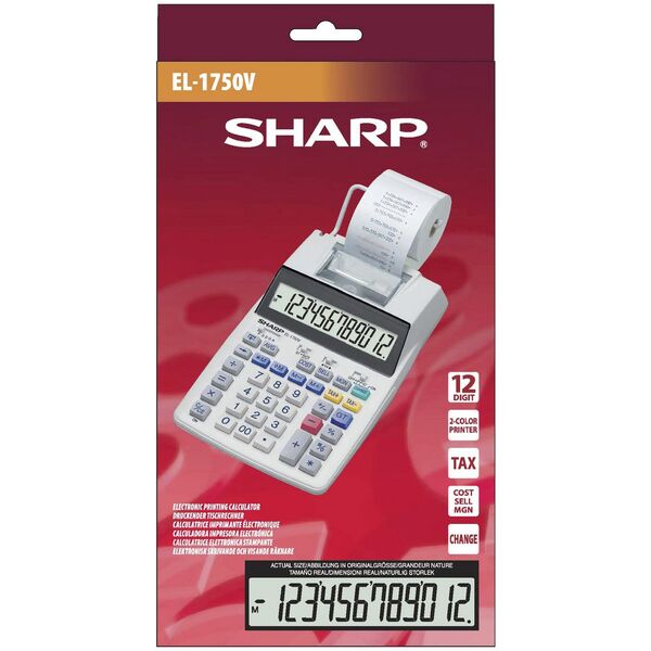 Sharp EL-1750V Two-Color 12 Digit Desktop Printing Calculator