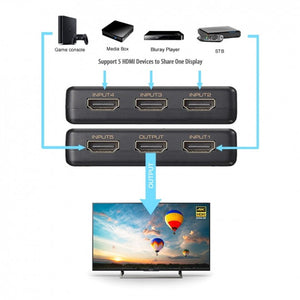 Simplecom 5 Way HDMI Switch 5 IN 1 OUT Splitter 4K@60Hz Ultra HD