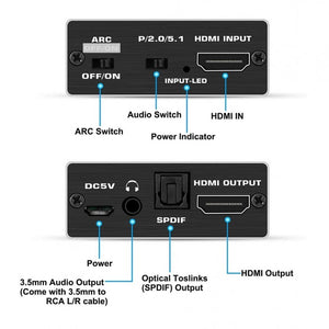 CM425 enables extracting of embedded audio from HDMI source or extracting of audio from an ARC compatible TV directly, and output audio separately on either an analog stereo audio connector or a digital optical SPDIF connector.