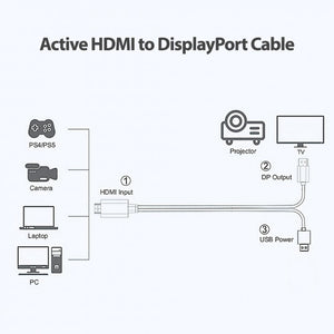 - Active converter cable connects your HDMI source to a DisplayPort monitor