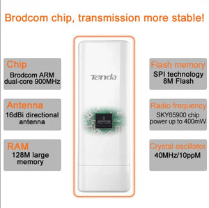 - O6 adopts of independent external power amplifier and 16dBi directional antenna to provide an efficient way to pick up and maintain a stable signal for a wireless network up to 10km