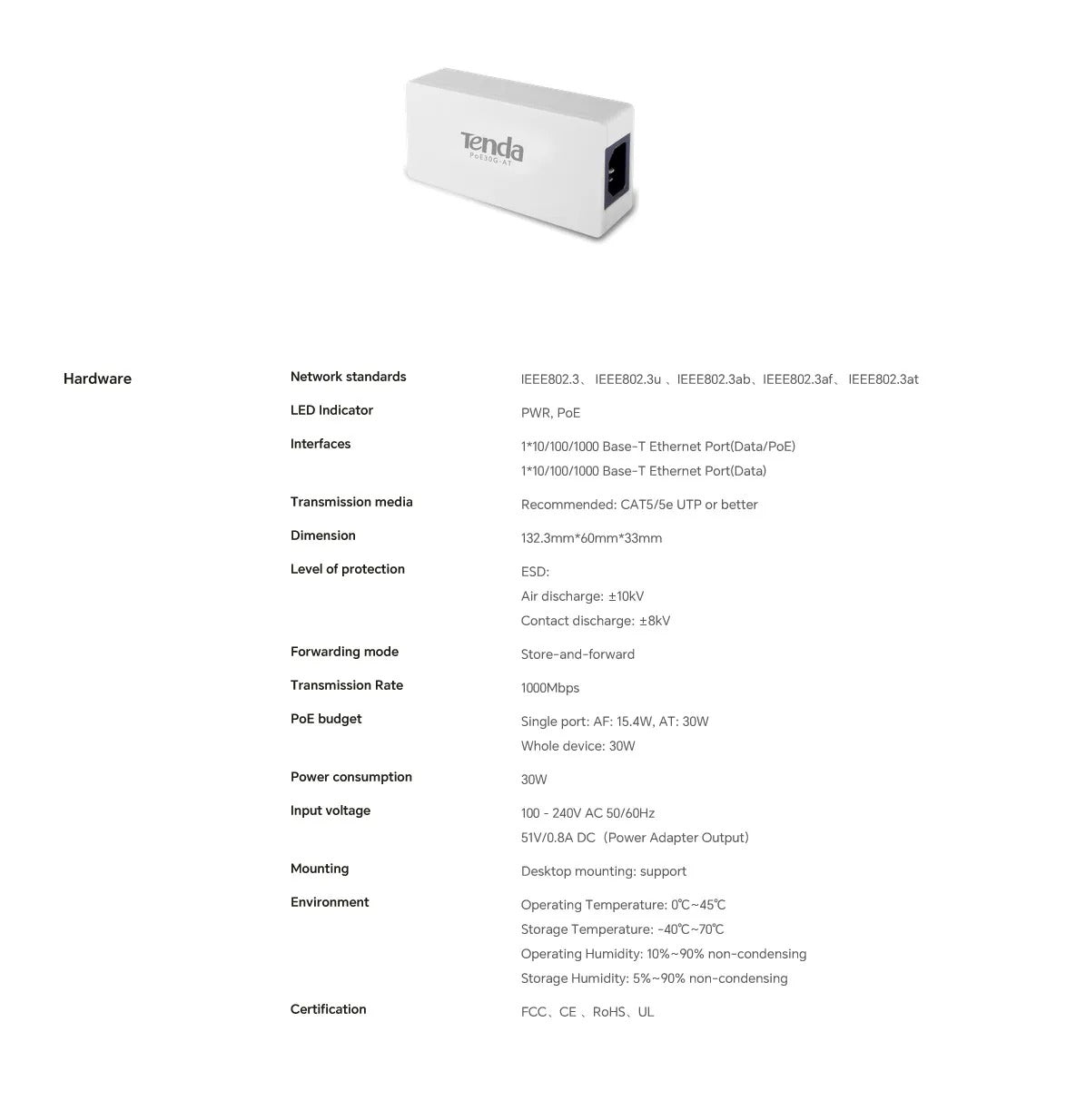 | Model | Tenda PoE30G-AT v3.0 |