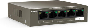 Tenda TEF1105P-4-63W 5-Port Desktop PoE Switch with 4 PoE+ Ports