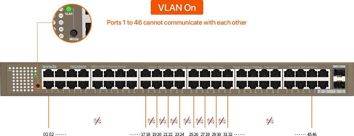 48-Port High-Density Gigabit Switch: The Tenda TEG1050F provides 48 Γ Gigabit RJ45 ports for dense wired deployments in offices, schools, surveillance systems and network rooms.