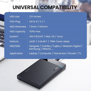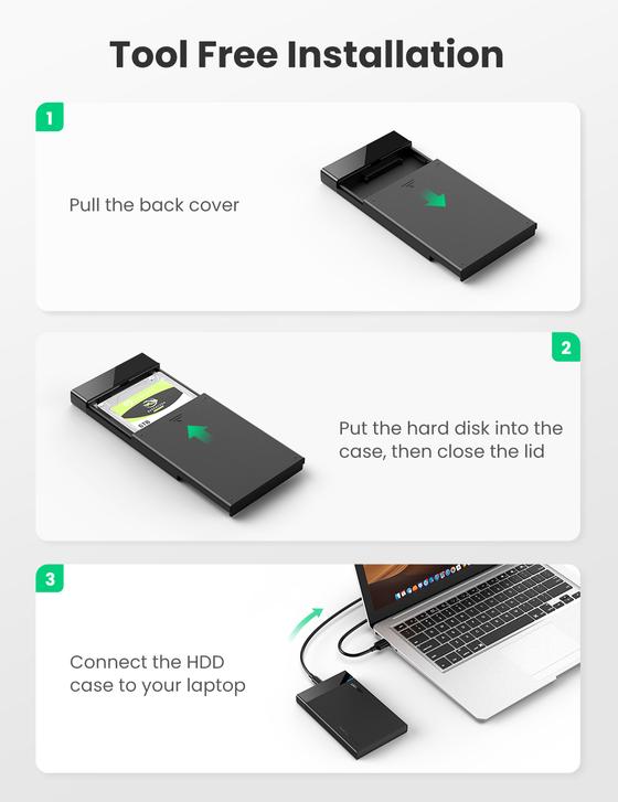 Effortless Connectivity: The Ugreen 2.5'' Hard Drive Case provides the perfect solution for connecting your 2.5'' hard drive to your PC or laptop. Enjoy hassle-free data transfer and storage access.