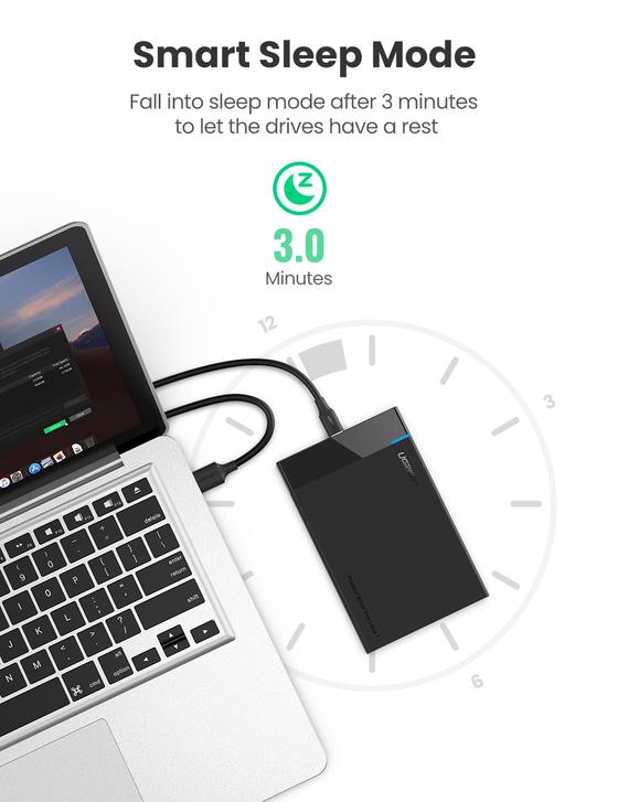 Auto Sleeping Mode: The hard drive case features an auto-sleeping mode, intelligently saving power when the device is not in use. This energy-saving feature contributes to an eco-friendly and efficient operation.