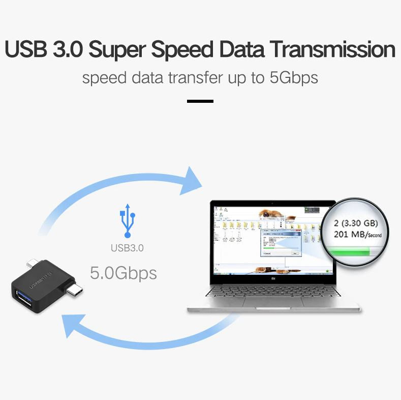 UGREEN 2 in 1 USB-C + Micro-USB OTG Right-Angle Adapter
