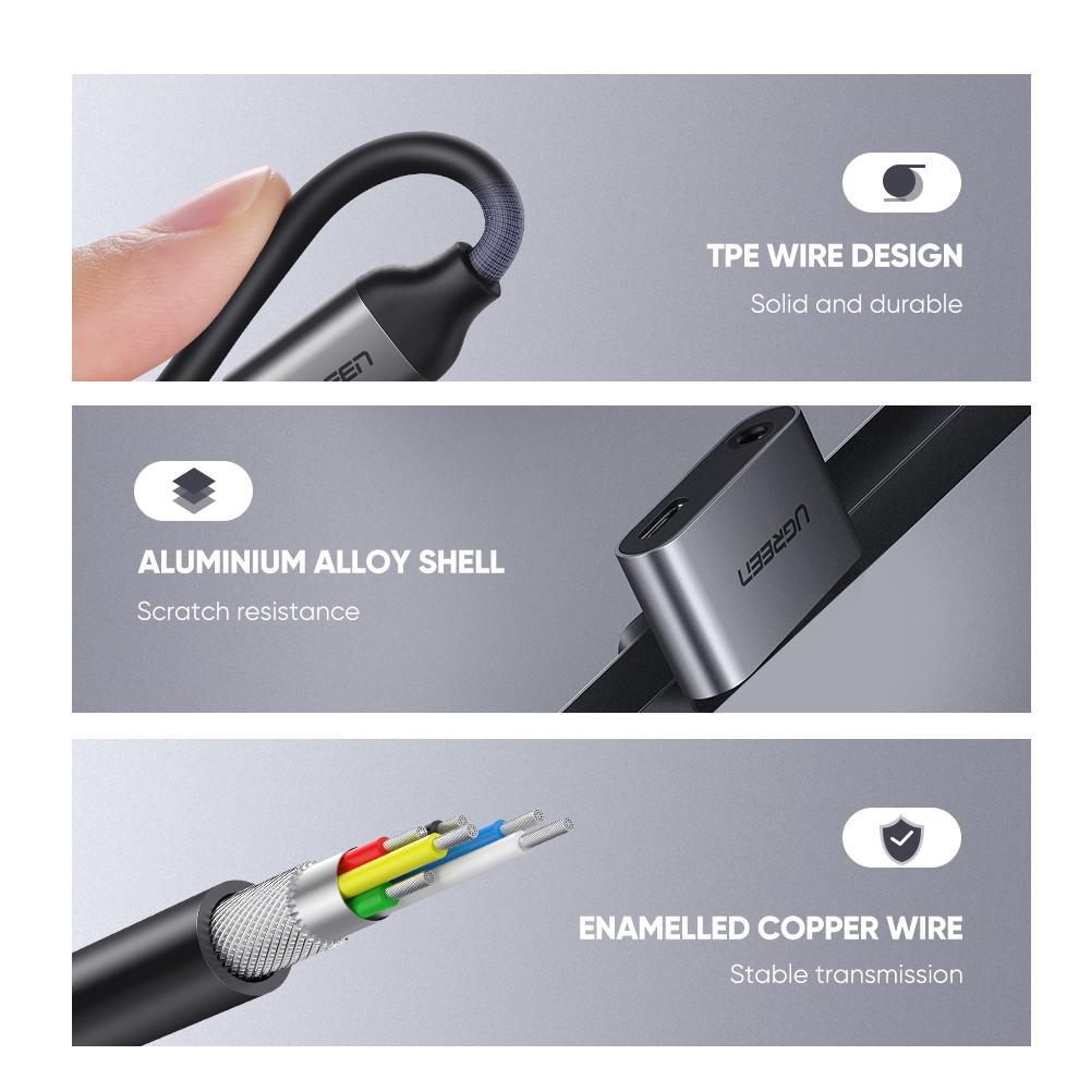 UGREEN USB Type-C and 3.5mm AUX Audio 2 in 1 Adapter with PD Charging