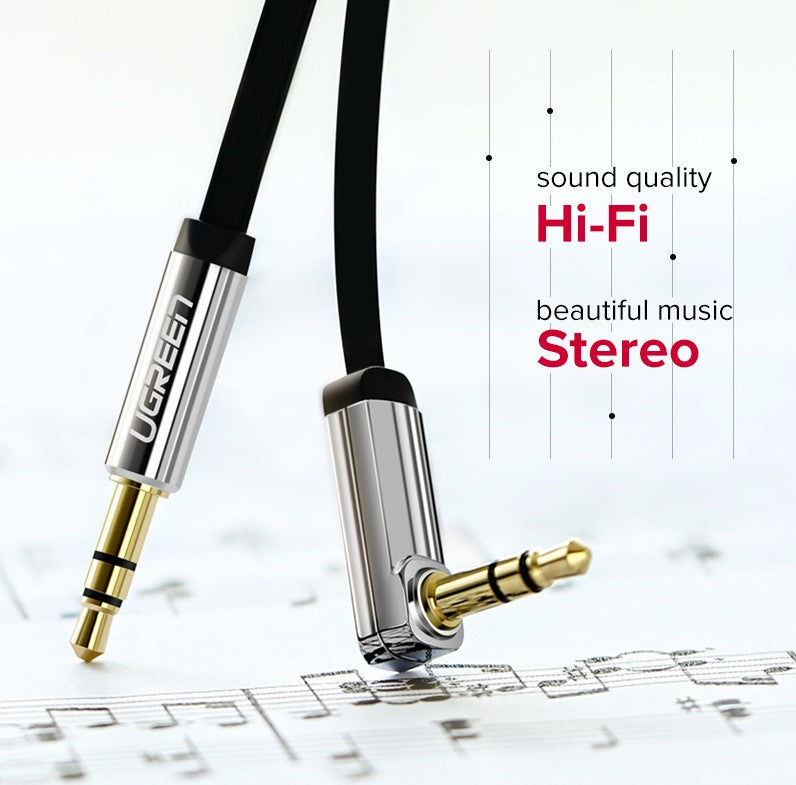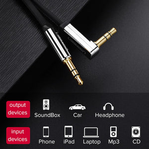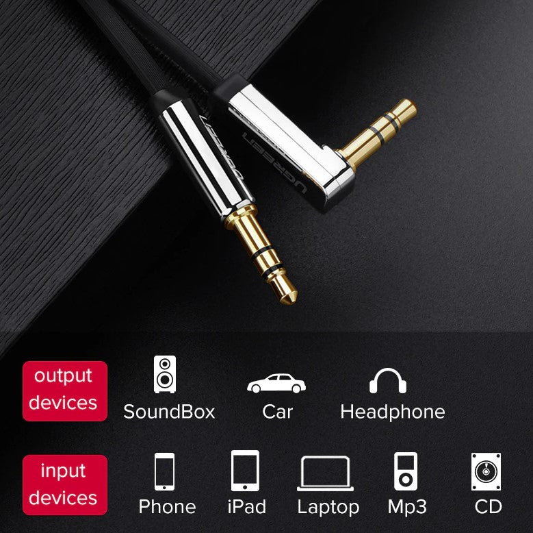 Premium Sound Quality: Elevate your audio experience with Ugreen's 3.5mm AUX Right Angle Audio Cable. Gold-plated connectors and enamelled triple-shielded copper ensure high-fidelity sound, reducing noise and delivering clear, immersive audio.