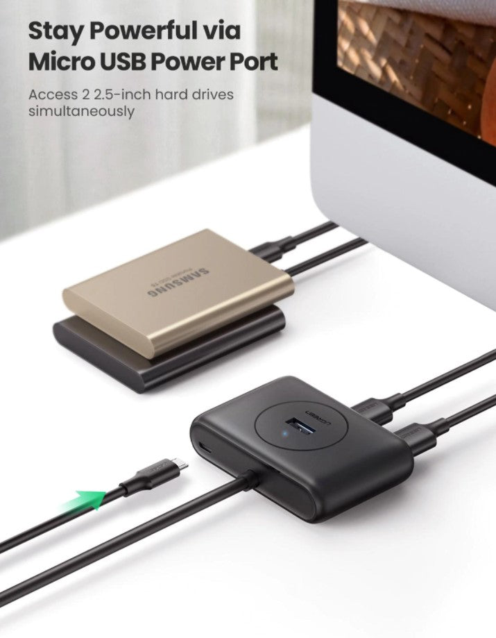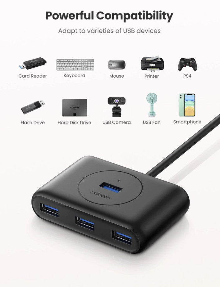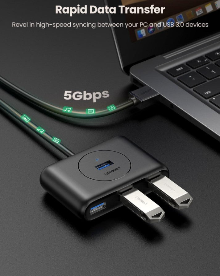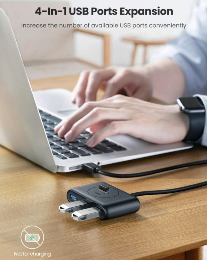 Expansive Connectivity: Ugreen's 4-Port USB 3.0 Hub is designed to expand your available USB ports on your PC or laptop, providing convenient connectivity for various peripherals simultaneously.