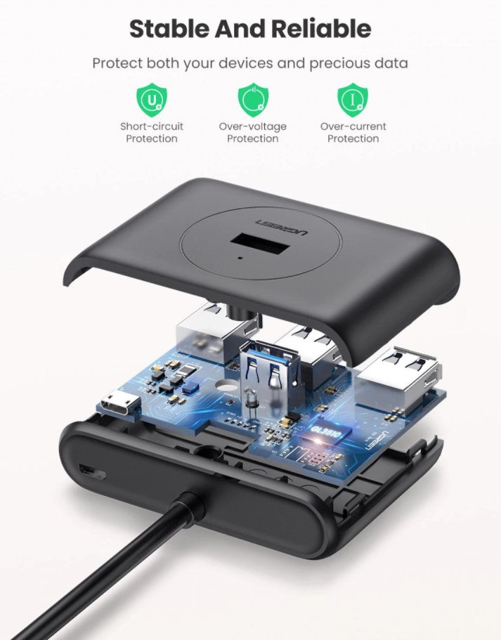 Comprehensive Protection: Ugreen's hub incorporates short-circuit, over-voltage, and over-current protection mechanisms. This safeguarding ensures the safety of both the connected devices and the hub itself, providing peace of mind during usage.