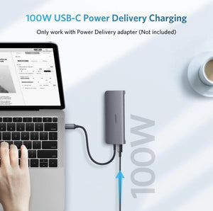 USB-C Power Delivery: With a robust USB-C Power Delivery port supporting up to 100W, the hub enables pass-through charging. This feature allows you to power your laptop or USB-C device while simultaneously using the hub for data transfer and other functions.