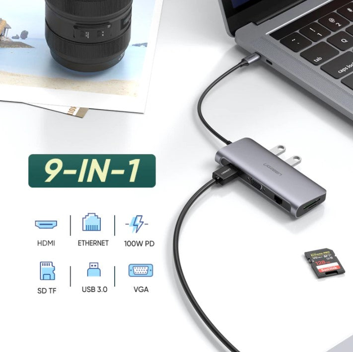 Comprehensive Connectivity: Ugreen's 9-in-1 USB-C Hub is a versatile solution for expanding the connectivity of your laptop or device. With multiple USB ports, HDMI, VGA, RJ45, USB-C PD, and SD TF card slots, it offers a diverse range of options for connecting peripherals and extending your capabilities.