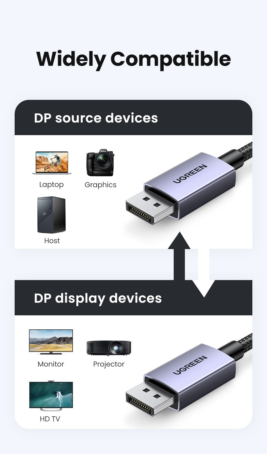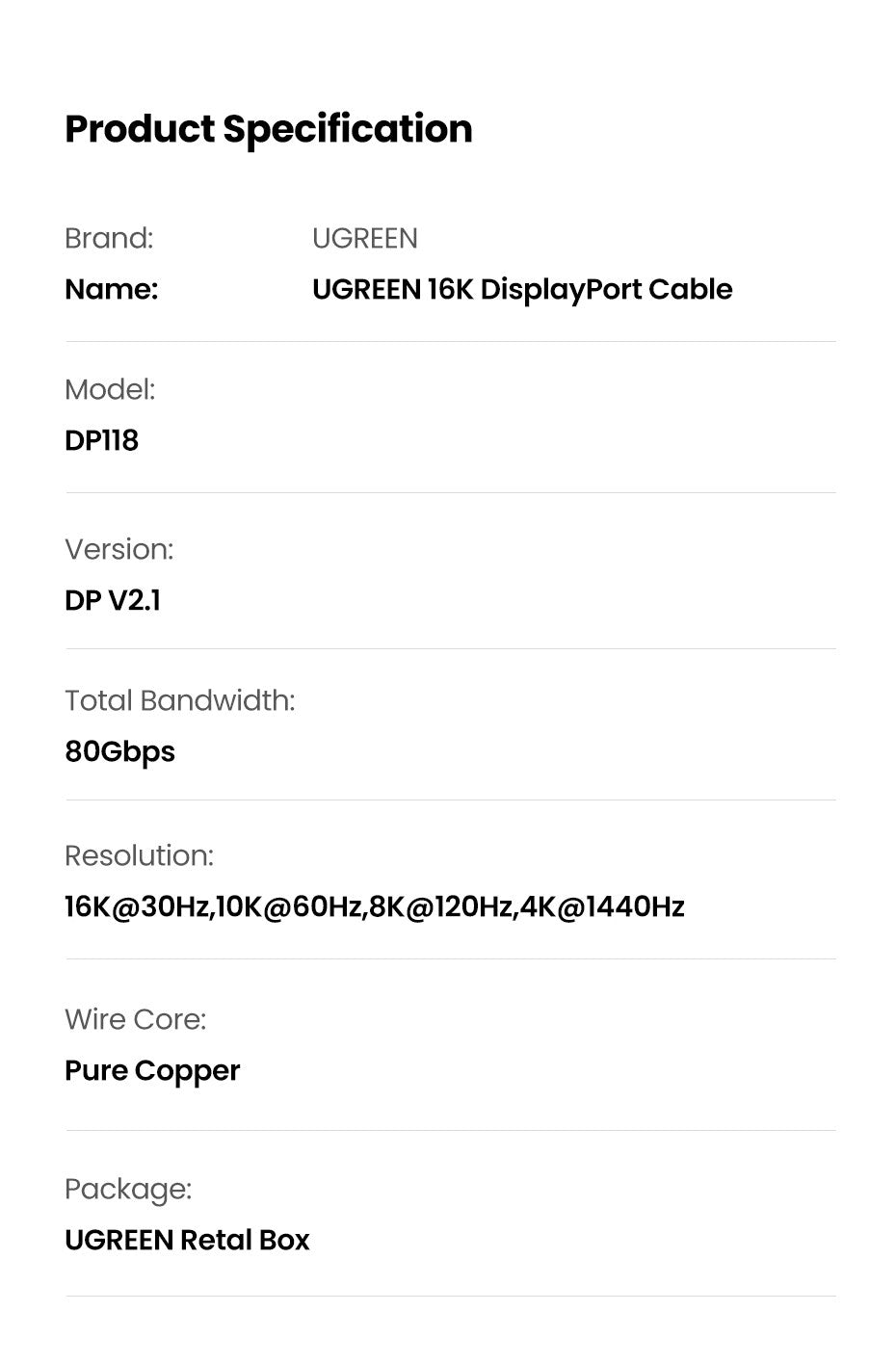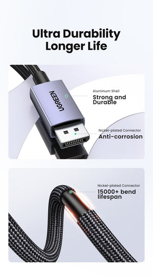 UGREEN 16K Displayport 2.1 VESA Certified Cable Male to Male Nylon Braided Cable Support HDR HDCP 2.2 DSC 1.2a