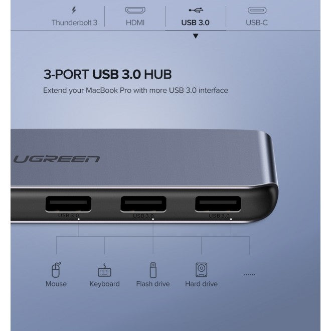 Comprehensive Expansion:Β Ugreen's Dual USB-C Hub is tailor-made for expanding the limited slots on your MacBook Pro. With multiple USB 3.0 ports, Thunderbolt 3, and USB-C PD