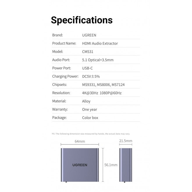 UGREEN HDMI Audio Splitter 4K@30Hz with Optical 3.5mm