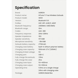 UGREEN HiTune T1 TWS Bluetooth 5.0 Stereo Wireless Earbuds