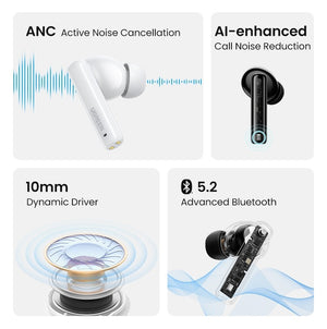 - Immersive Noise Cancelling Experience: Ugreen HiTune T3 TWS Earbuds feature advanced Active Noise Cancelling (ANC) technology, dynamically blocking external noise for an undisturbed audio experience during your commute or workout.