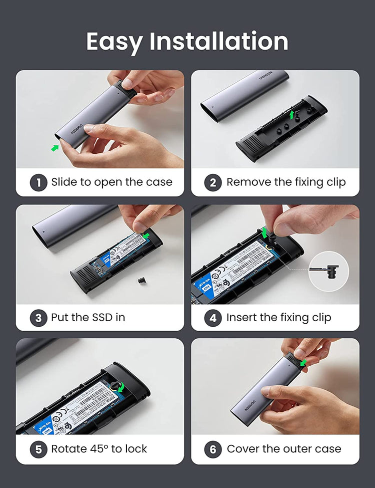 - Reliable & Durable:Β Made of premium aluminium alloy, UGREEN enclosure does better at heat dissipation, no cooling fan is needed for high-speed working. Built with short-circuit, over-current and over-heat protection, it ensures safety to your NGFF SATA SSD drives and valuable files. Plus features S.M.A.R.T function to check the status of your M.2 SSD drive easily. The LED indicator lets you learn the working status easily.