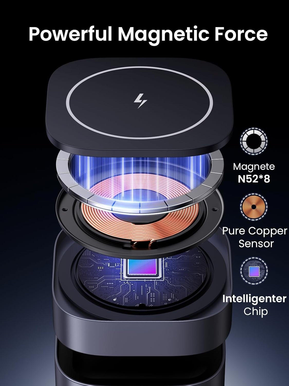 - Superior Safety: Equipped with overcurrent, overvoltage, over-temperature protection, and foreign object detection. The magnetic charging surface is covered by silicone to prevent scratching your device.