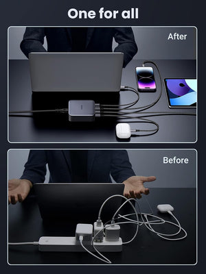 - 4-in-1 Multiport Charger: With superior GaN II tech, 3 USB-C ports and 1 USB-A port provide 100W to phones, tablets, laptops, and more! All at the same time.