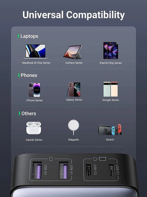Advanced Safety Features: The GaN and SiC chips offer improved heat dissipation, and Ugreen's Thermal Guard System constantly monitors temperatures, ensuring your devices are protected from overheating.