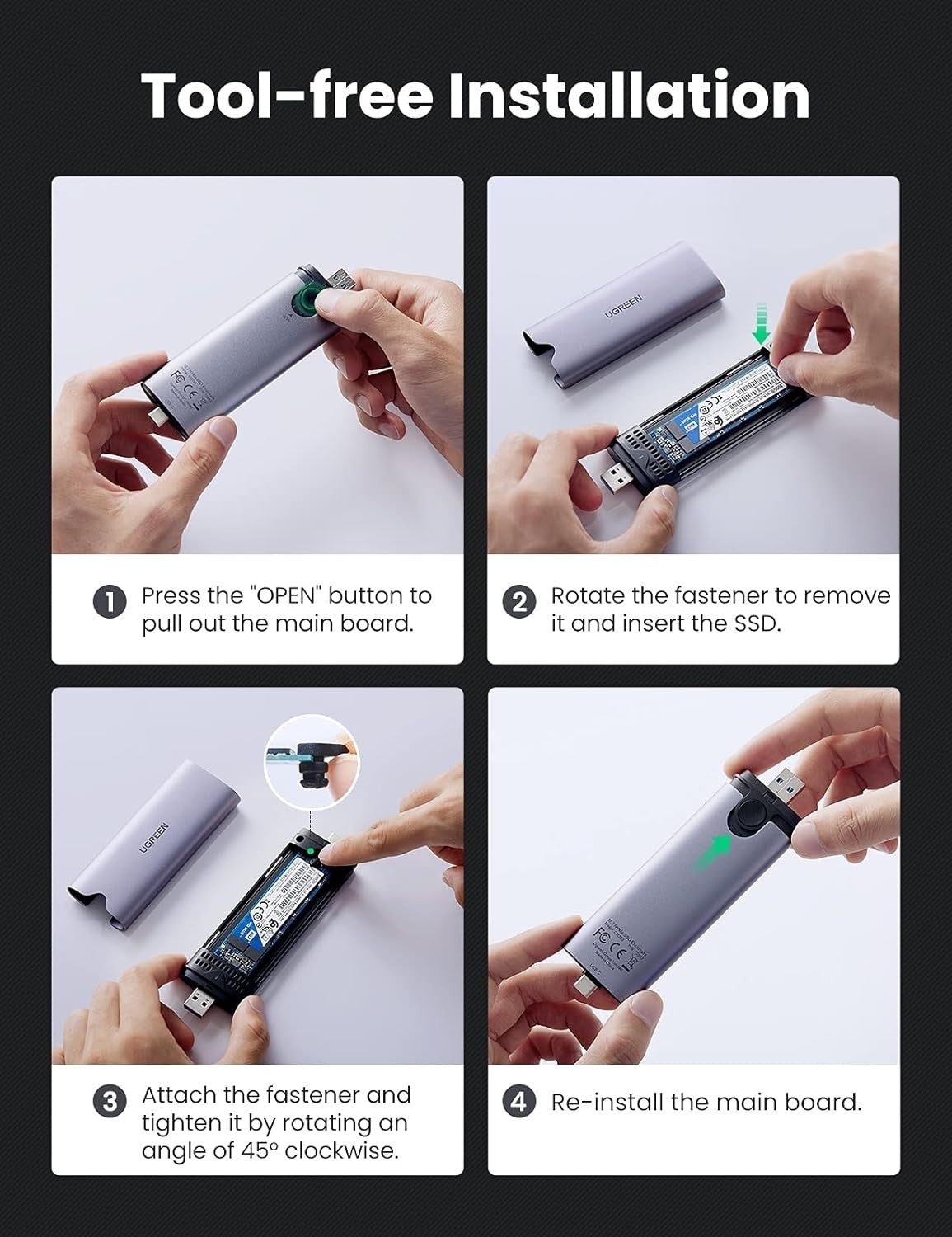 - User-Friendly Design: Enjoy a hassle-free experience with tool-free installation, plug-and-play functionality, and no requirement for drivers or external power. Hot-swapping is supported, and its compact aluminum shell makes it easily portable for on-the-go use.