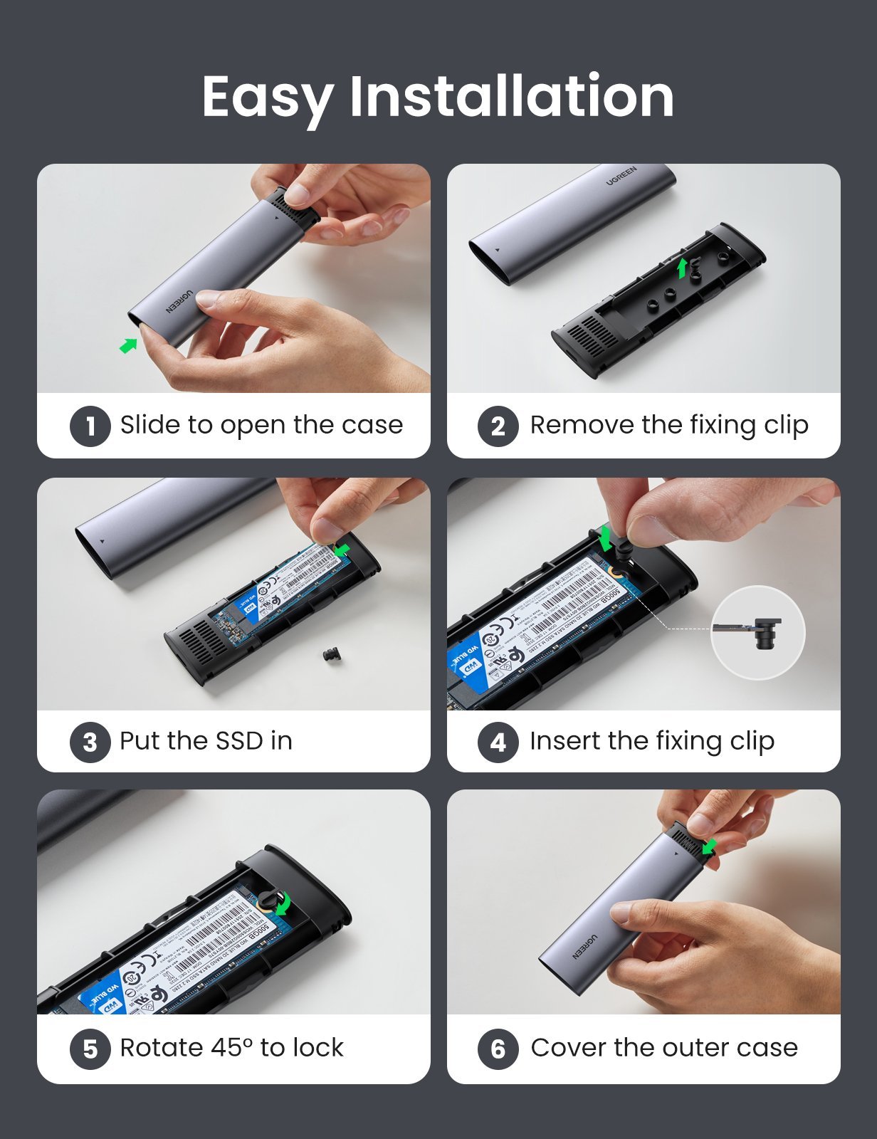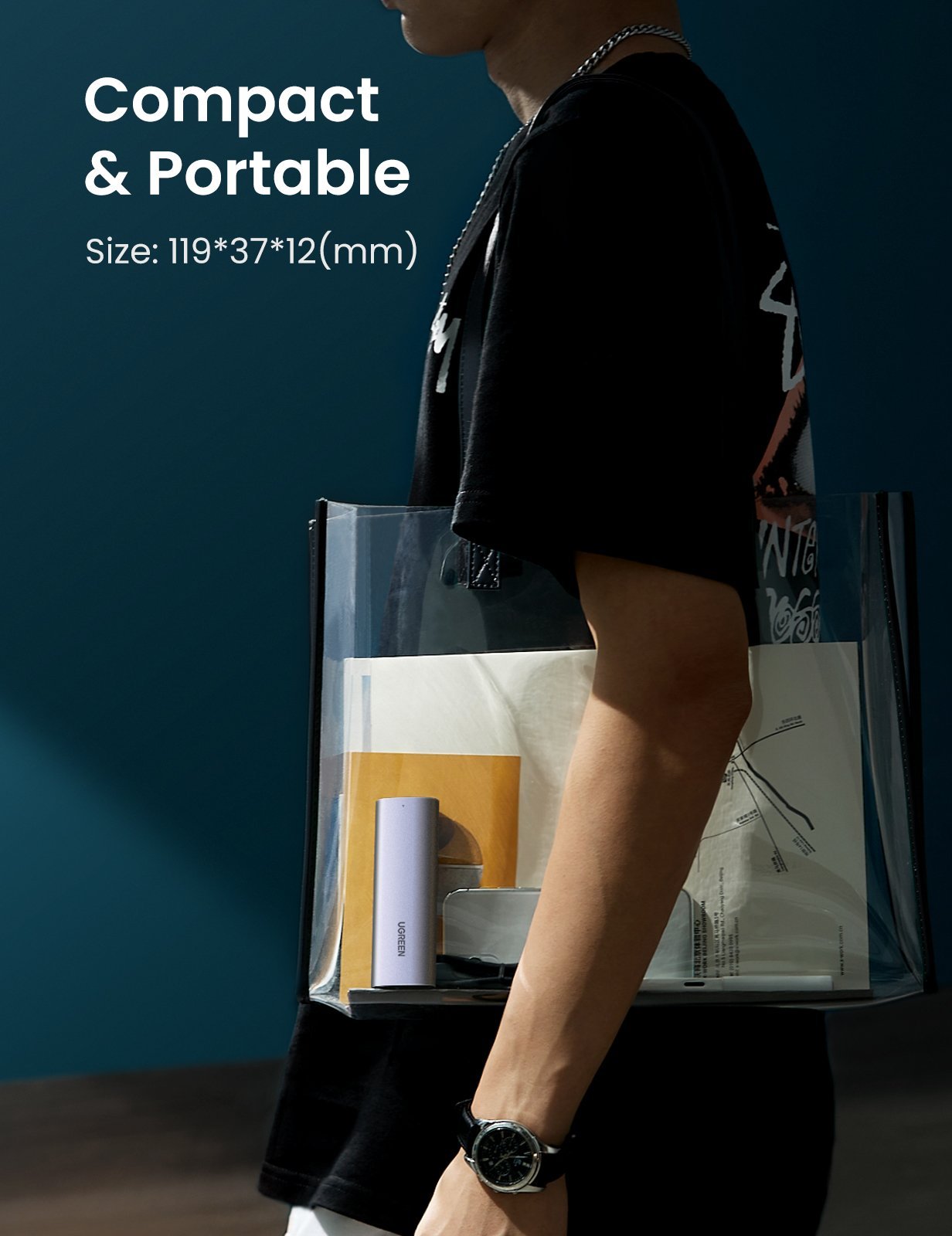 Durable Aluminum Alloy Casing: Built with durability in mind, the Ugreen NVMe M.2 SSD to USB-C 10Gbps Case Enclosure features an aluminum alloy casing. This not only enhances the enclosure's robustness but also provides a premium and sophisticated feel.