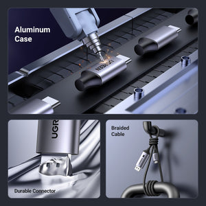 - Durable Design: Features a braided nylon jacket, aluminum alloy casing, and thick copper wiring for durability, efficient heat dissipation, and signal integrity.