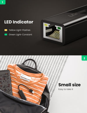 Compact and Portable: With its compact and portable design, the Ugreen USB 3.0 to RJ45 Ethernet Adapter is perfect for users on the go. Carry it with you to ensure a reliable Gigabit Ethernet connection wherever you are.