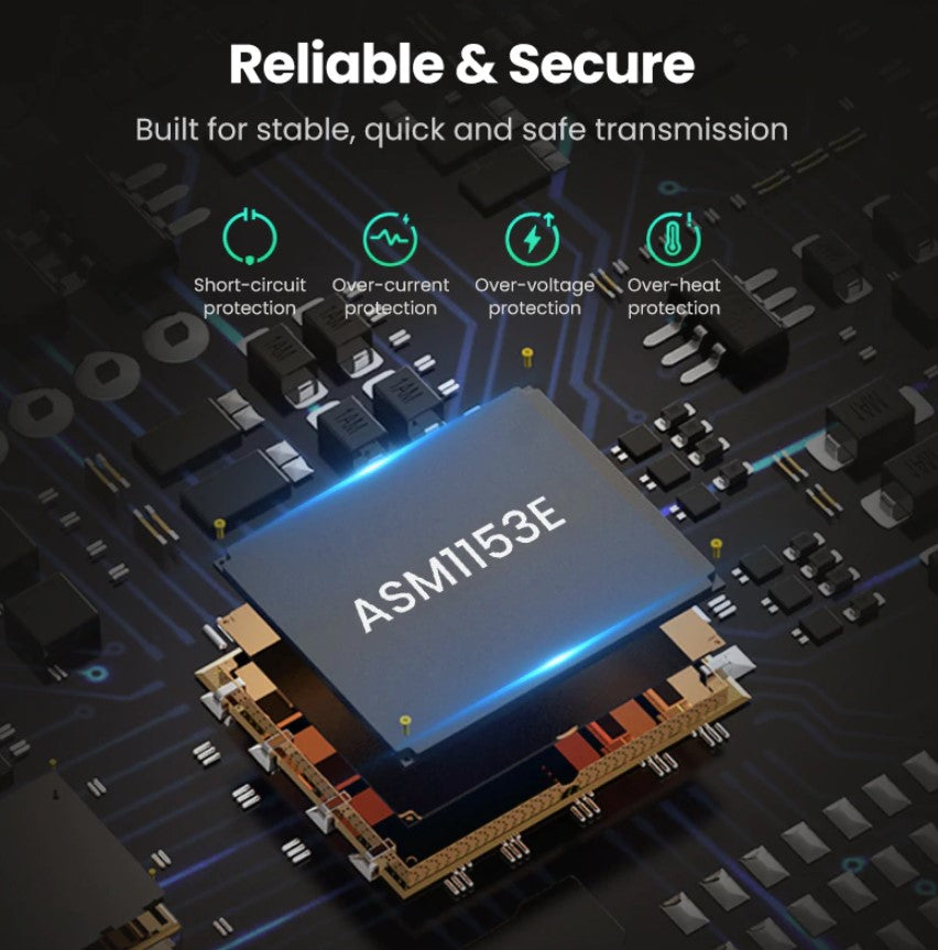 - ASM1153E chipset offering shortcircuit, over-current, over-voltage and over-heat protection