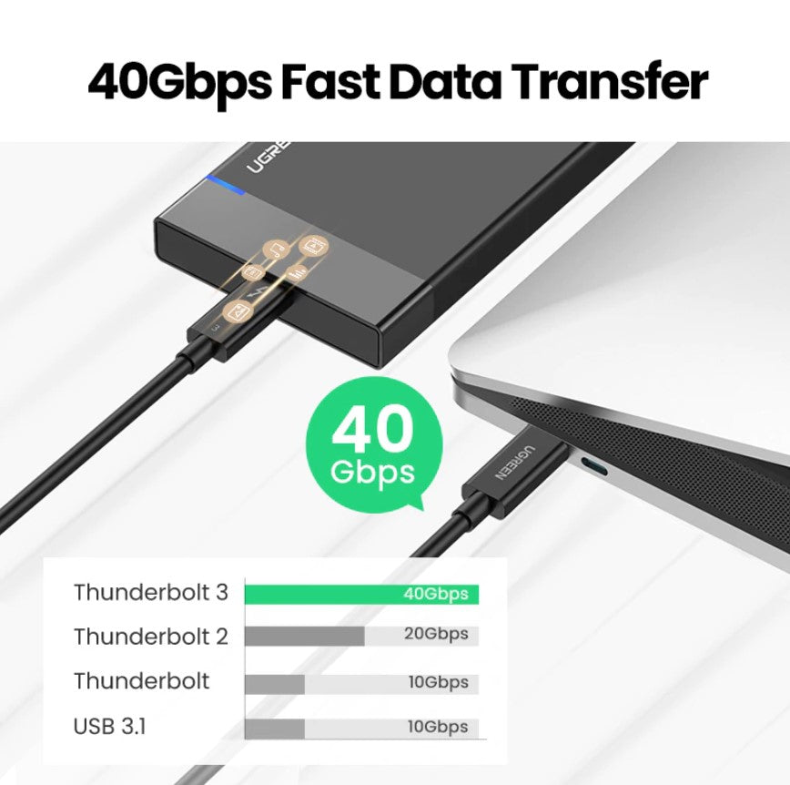 UGREEN USB-C Type-C Thunderbolt 3 Cable 5K 40Gbps 100W Cable - 0.5M