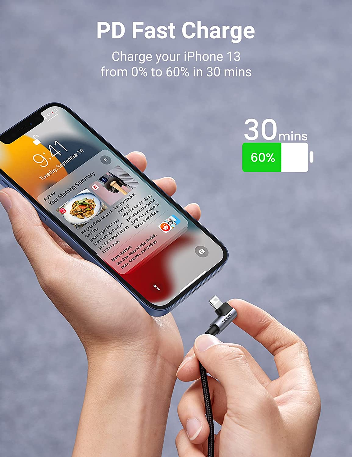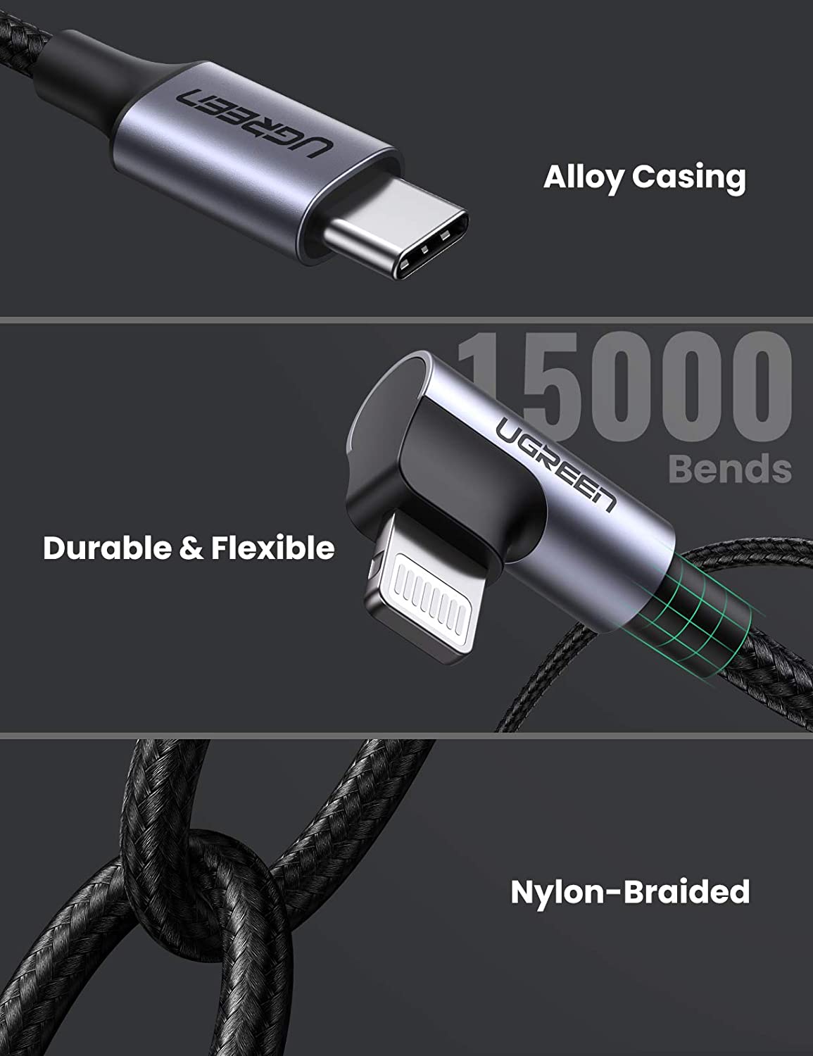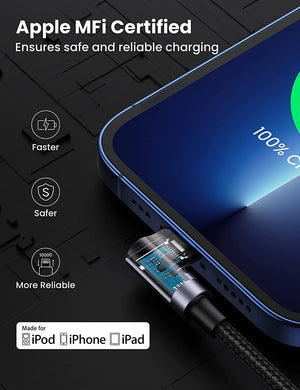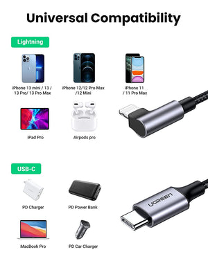 UGREEN Lightning to USB Type-C MFi Certified Right Angled Braided Fast Charge Cable