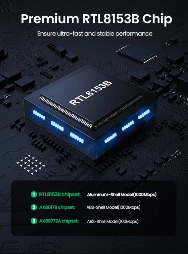 High-Performance RTL8153B Chipset: The adapter is equipped with the high-performance RTL8153B chipset, known for its efficiency and reliability. This chipset ensures stable and high-speed network performance, meeting the demands of modern computing.