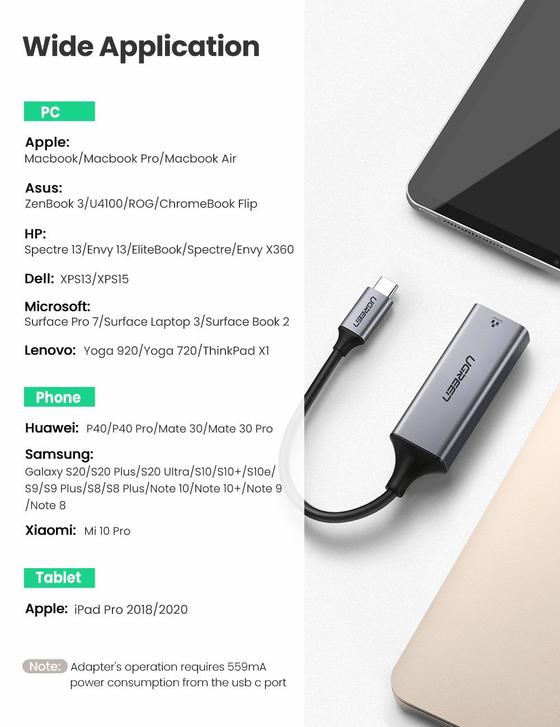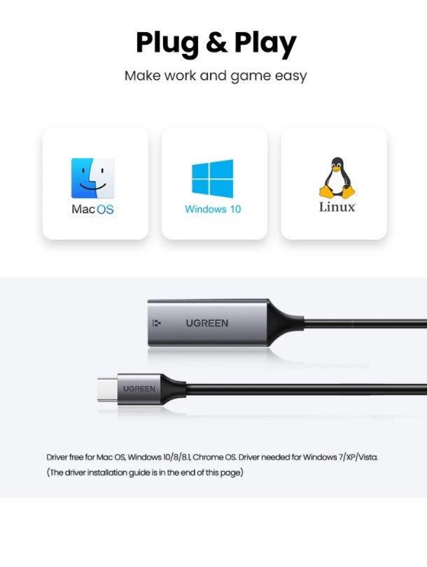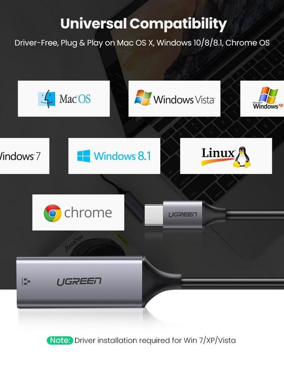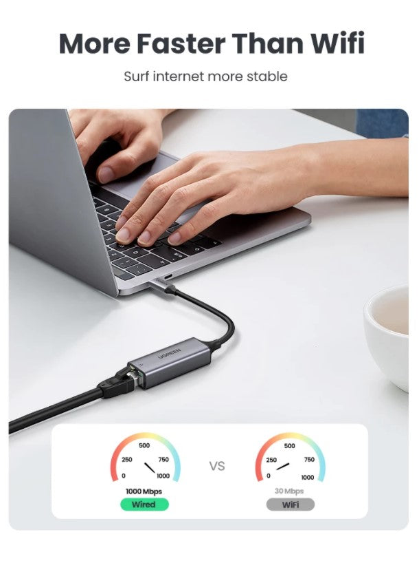 Efficient Ethernet Connectivity: Elevate your connectivity with the Ugreen USB C to RJ45 Gigabit Ethernet Adapter Network Card Aluminum. This adapter offers a streamlined solution to integrate your Ethernet cable with a USB-C connection, ensuring reliable and efficient network connectivity.
