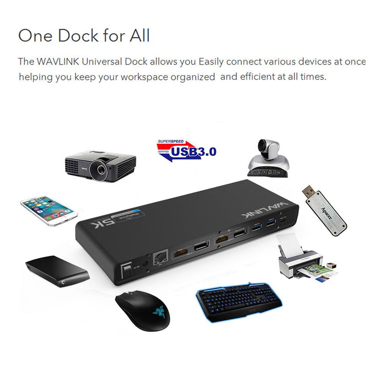 Wavlink USB-C 5K Docking Station Dual 4K Video HDMI Universal